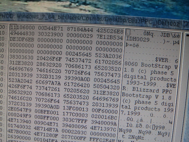 Nous allons y flasher un firmware plus récent, le dernier disponible (le 1.9). Il faut y insérer le numéro de série de la BlizzardPPC dans les premiers octets (ici IDH0029) avec un simple éditeur hexa :