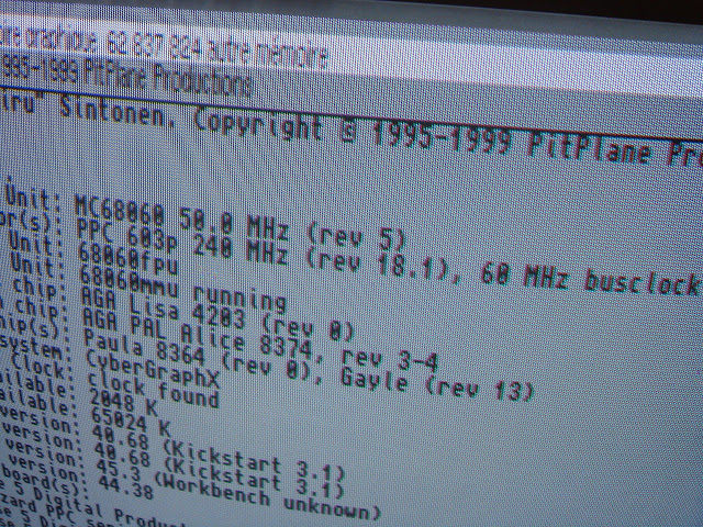 Ouf, rebootons. La BlizzardPPC semble fonctionner. La fastram aussi, et le Workbench 3.9 se lance tout bien...