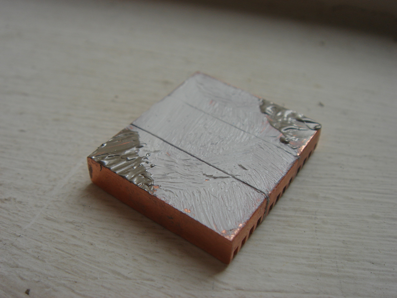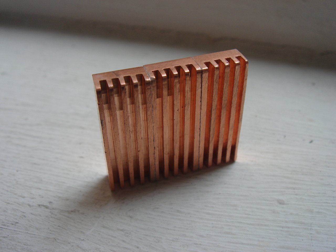 C'est bien trop élevé pour être laisser comme ça. Prenons donc des radiateurs en cuivre de modules Rams PC que nous allons quelque peu adapter puisque les Simms à deux faces gênent :