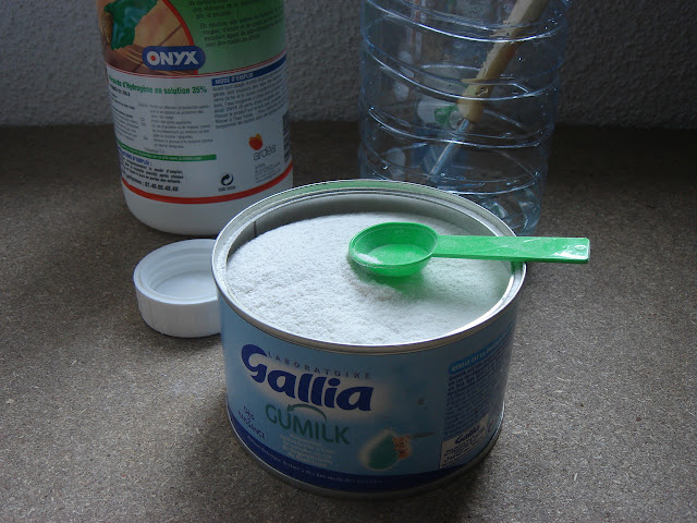 Ajoutons du Gallia qui est un épaississant, jusqu'à obtenir un gel. Deux cuillères suffisent pour cet exemple avec peu d'eau oxygenée :