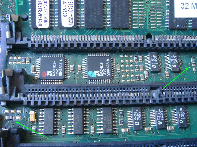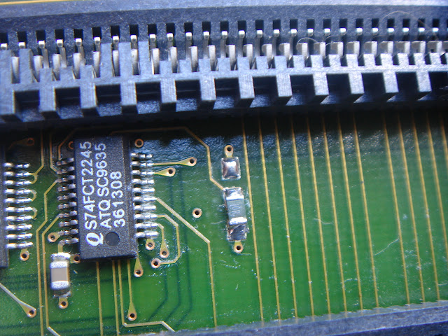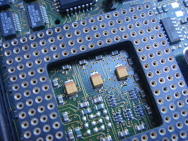 Pareil... Pas de boot... Otons alors le support d'U7, puisque de temps en temps les contacts sont aléatoires avec ces sockets. Non, toujours pas de boot... Après un changement complet de tous les condensateurs, ce 1200 ne veut toujours pas démarrer...
