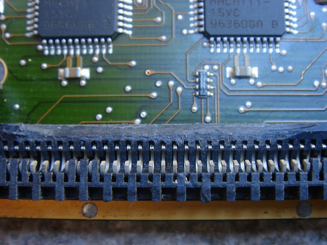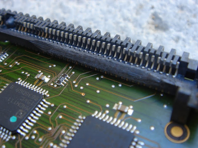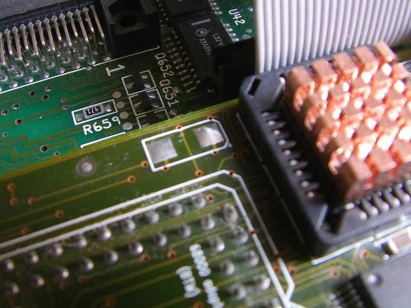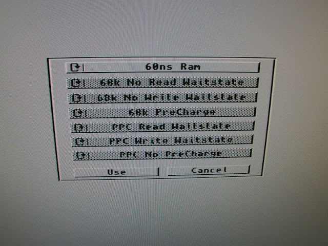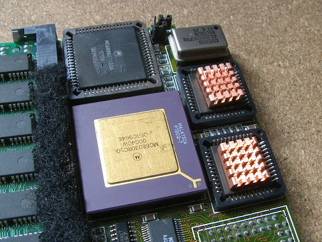 Voici une application concrète de mémoire Simm plus rapide. Sur cette BlizzardPPC, le 603e est alimenté par un quartz de 50 Mhz (le 64 au dessus est pour le 060) :