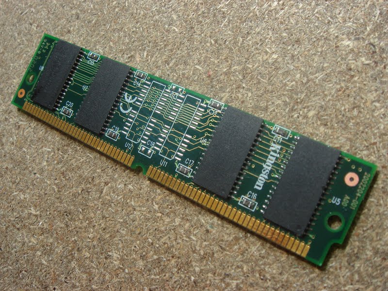 Nous augmentons le FSB, il faut donc de la mémoire plus rapide. De la très bonne 50ns est installée pour cet test. En effet, toutes les 50ns ne sont pas identiques : il semblerait que suivant le fabricant, certaines soient plus rapides que d'autres ! Les différentes Simms et modules m'ont couté une fortune ! J'y ai dépensé toutes mes économies !!