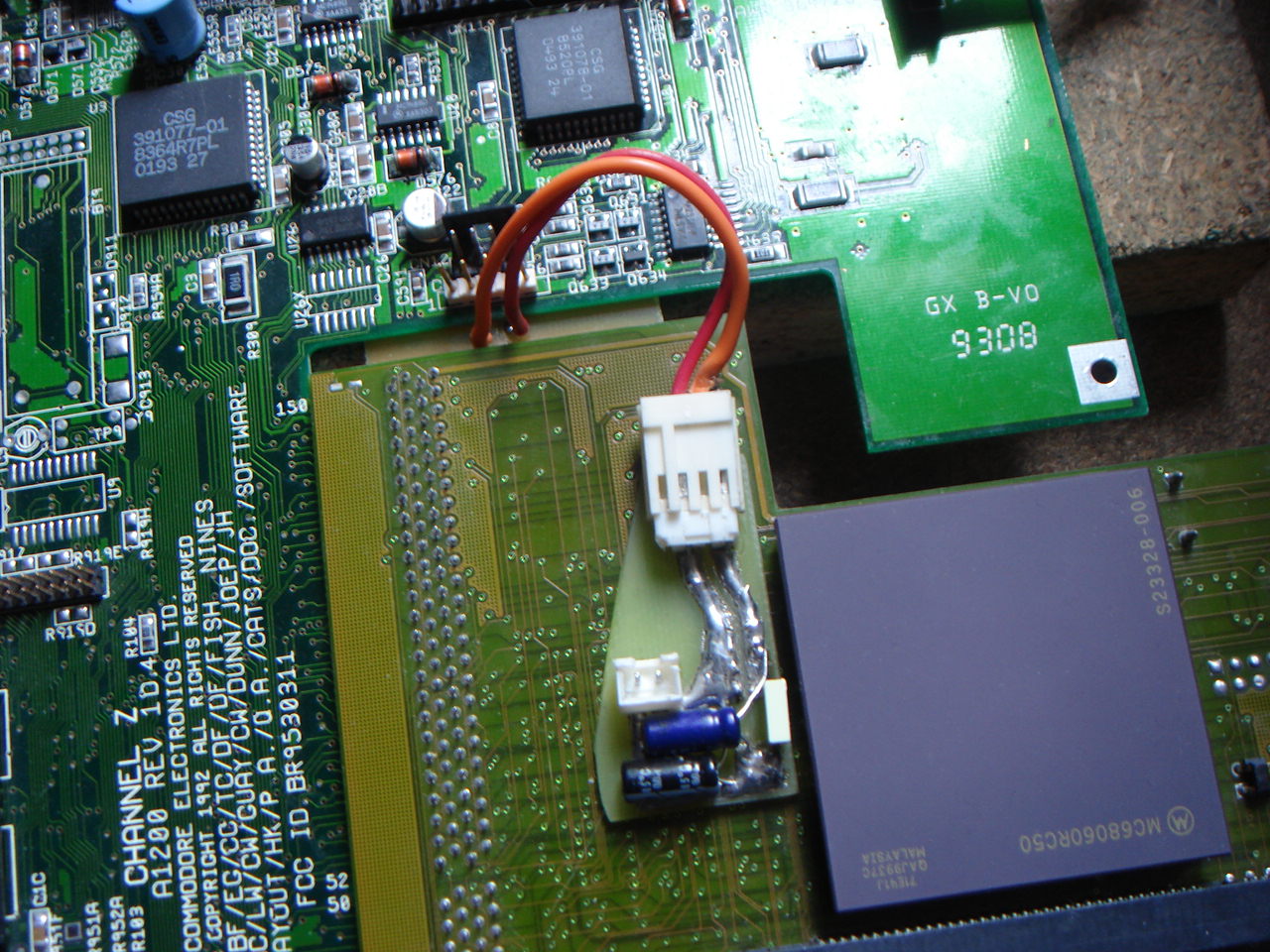 Cette bidouille permet donc d'avoir un fort +3.3v disponible pour un 1200 monté en desktop, ainsi que de soutenir le +5v sur toute la carte de l'Amiga. Et d'ôter le gros câble jaune du début bien disgracieux !