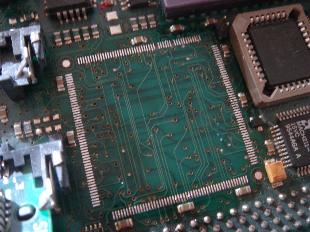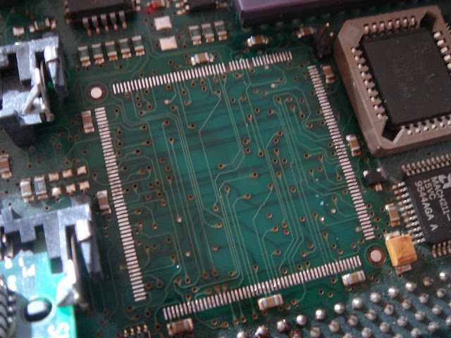 La panne classique sur ces cartes-là est la soudure des pinoches du gros composant : minuscules, des faux contacts apparaissent avec le temps qui passe...